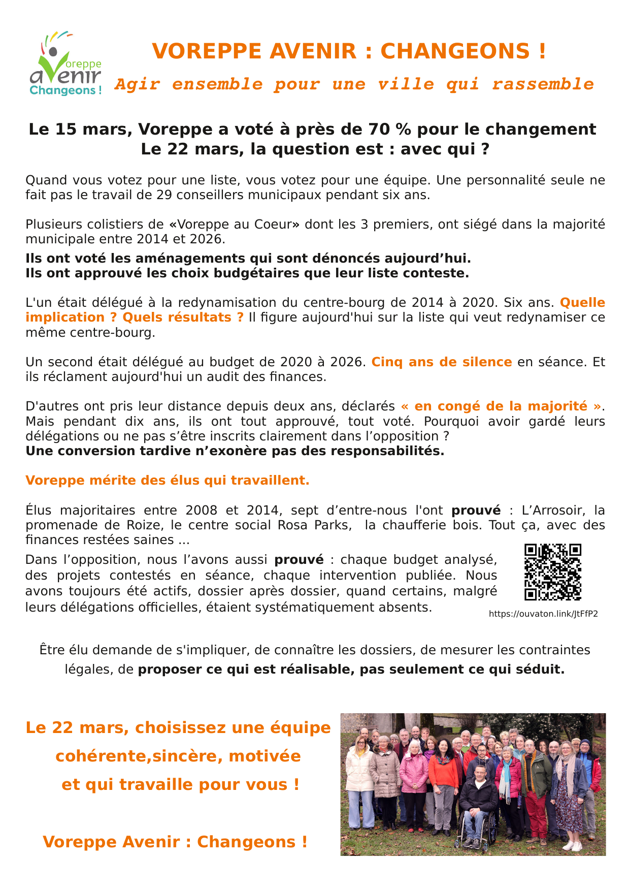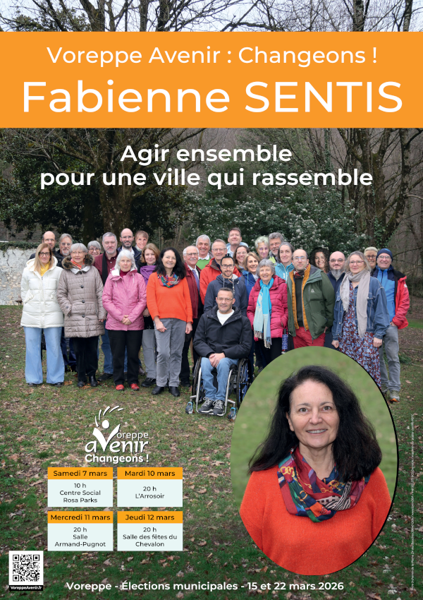 Je tiens à remercier chaleureusement toute l’équipe de « Voreppe Avenir : Changeons ! » pour son dynamisme, son engagement sans faille, et les liens précieux qui se sont créés.…