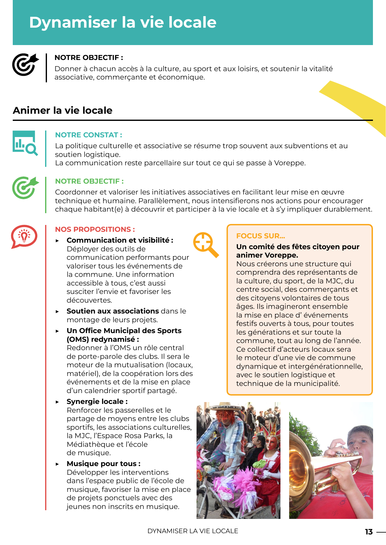 Notre Objectif : Donner à chacun accès à la culture, au sport et aux loisirs, et soutenir la vitalité associative, commerçante et économique.