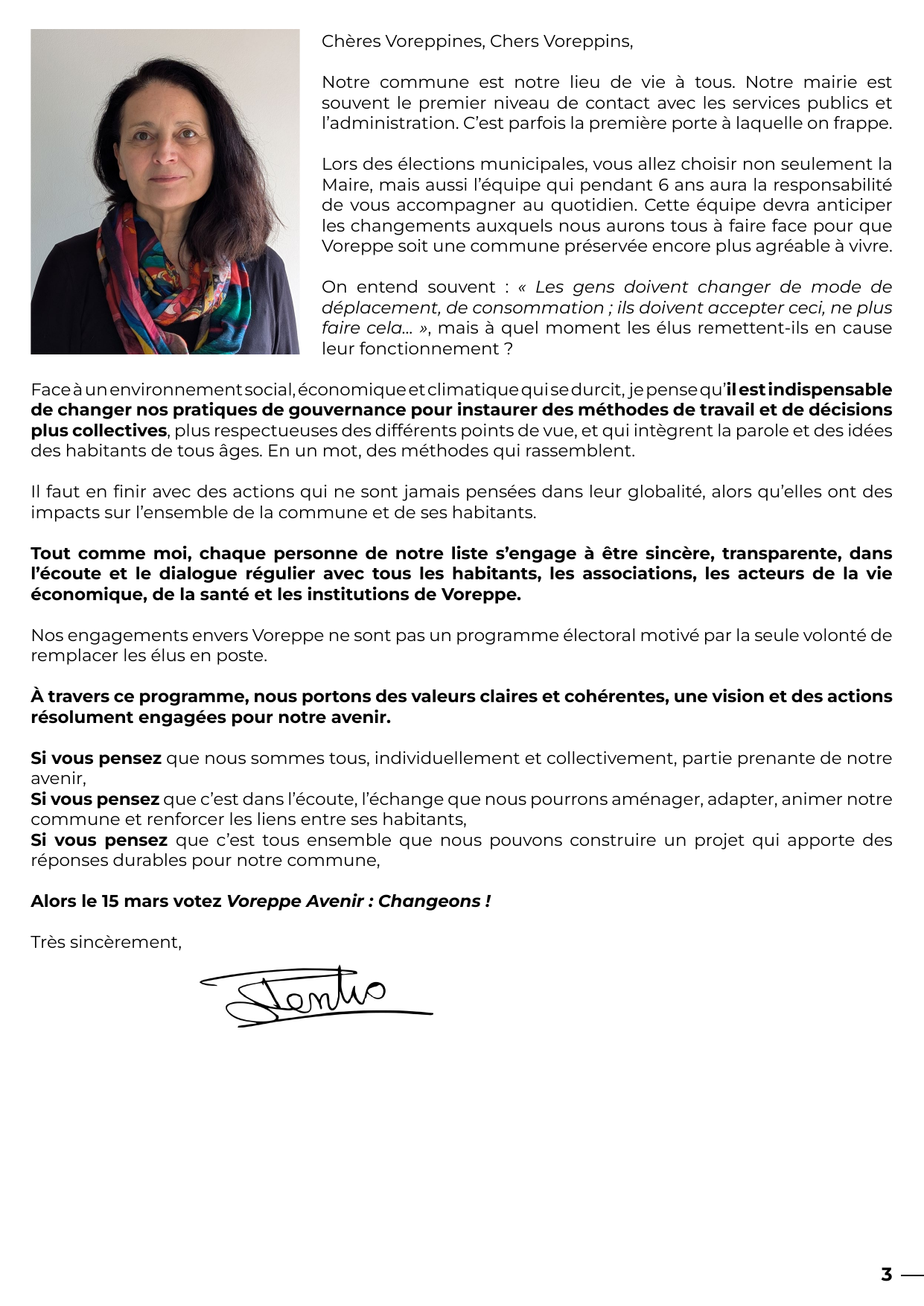 Tout comme moi, chaque personne de notre liste s’engage à être sincère, transparente, dans l’écoute et le dialogue régulier avec tous les habitants, les associations, les acteurs de la vie économique, de la santé et les institutions de Voreppe.